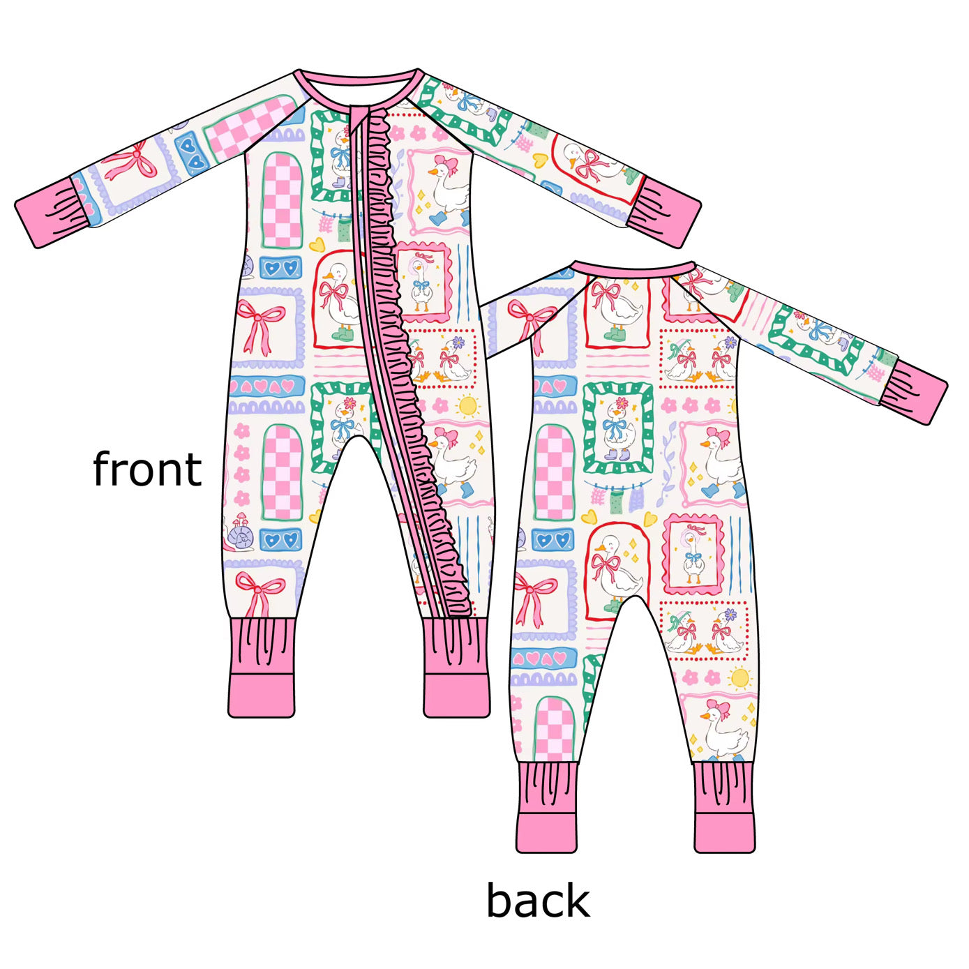 Look so cute with these silly goose on the loose double zipper romper bamboo pajamas this spring and summer!